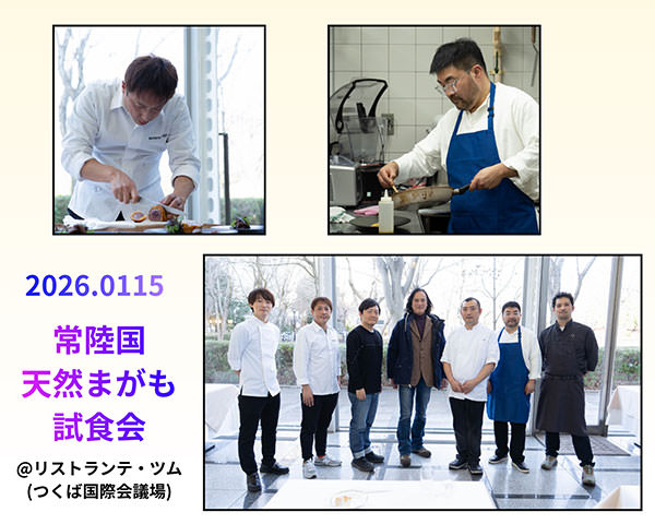 1月15日(木)に、リストランテ ツム(つくば国際会議場内)で常陸国天然まがもを使ったメニューの試食会を開催しました。